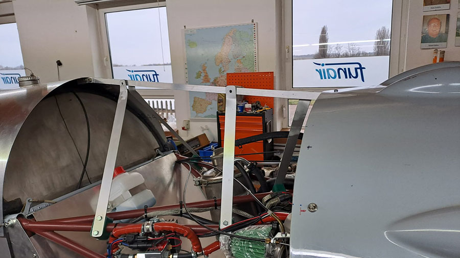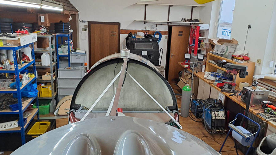 Nachdem wir nun das untere Blech der Cowling angebracht hatten, ging es weiter mit dem Oberteil. Hier ist das Ziel, einen schönen, fließenden Übergang der einzelnen Abschnitte zu erzielen. Stabil und zweckmäßig soll es auch noch sein. Daher haben wir versucht, eine Flucht zwischen Cowling, Motorhaube hin zum Co-Piloten-Cockpit her zu stellen. Die Klappen sollten von einer gemeinsamen, mittig angebrachten Strebe abgehen. Die Unterkonstruktion haben wir mit Aluprofilen hergestellt. Stabil war das ganze nach Fertigstellung, jedoch hat uns die Flucht nicht gefallen. Hier gab es beim Übergang von Cowling zu Motorhaube und von Motorhaube zu Co-Piloten-Cockpit unschöne „Knicke“! So funktioniert es also nicht!