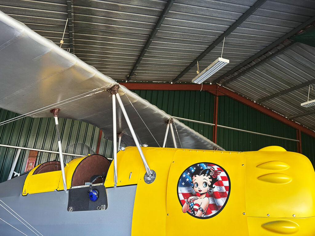 Um die oberen Streben für die Montage in Position zu bringen, mussten wir zunächst die Spannschlösser der Landeseile lösen. Danach konnten wir die oberen Streben montieren und die Landeseile nochmals spannen.