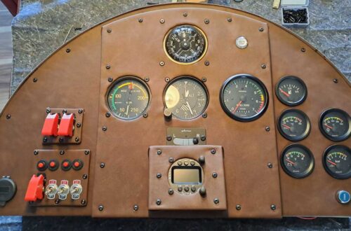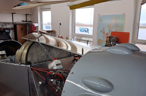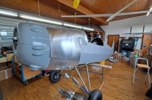 Danach haben wir noch einige abschließenden Arbeiten vorgenommen. Die Bespannung des Fahrwerks wurde am oberen Querrohr befestigt und gespannt. Auf die Kanten der Rumpfunterseite und am Fahrwerk wurde Zackenband aufgebracht. Die Buchsen für die Headsets wurden verkabelt. Die Makrolonscheiben wurden an den Kanten versäubert und endgültig angebracht. „Betty“ wurde nun auch auf die rechte Seite der Cowling geklebt.